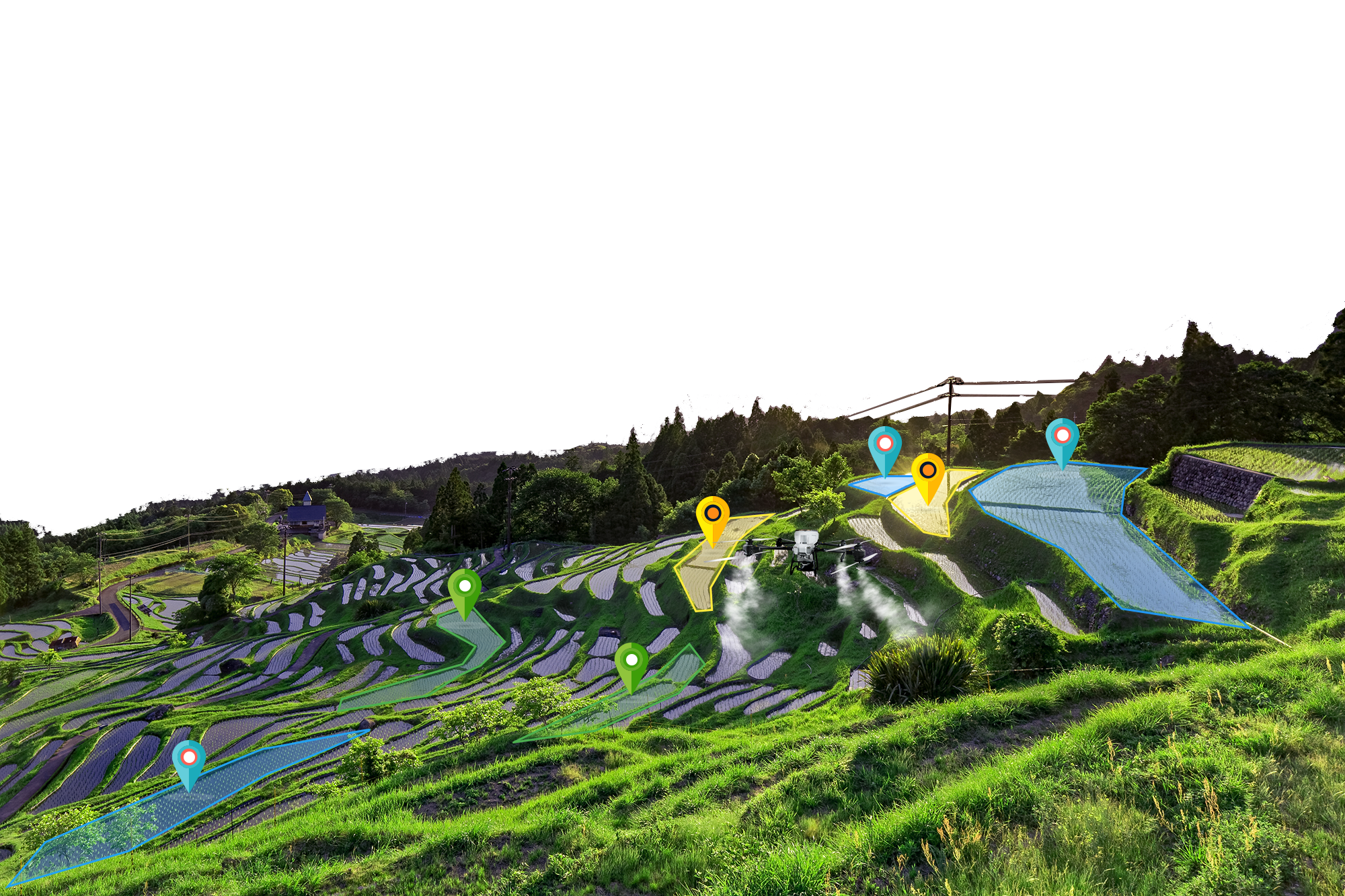 圃場管理およびドローン等による農薬・肥料散布の作業工程全般の最適化を行います。ドローン等による散布代行業務と現場の作業効率を向上させるモバイルアプリケーション、さらに発注業務の最適化を図る管理ソフトウェアを用いて、散布事業の無駄を省き、コストダウンと省 人化を実現します。